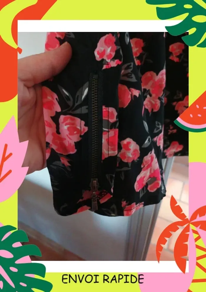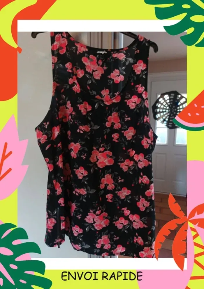 Jolie débardeur noire avec rose rose, fluide finition fermeture éclair sur les côtés qui fonctionne Largeur aisselles 50 #audreyg13390femme40
