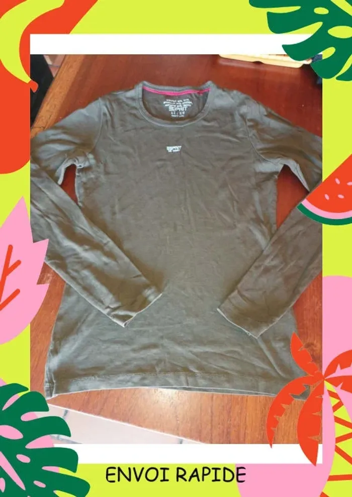 Tee-shirt manche longue en coton , marque esprit en taille S, très bon état couleur kaki #audreyg13390femme36