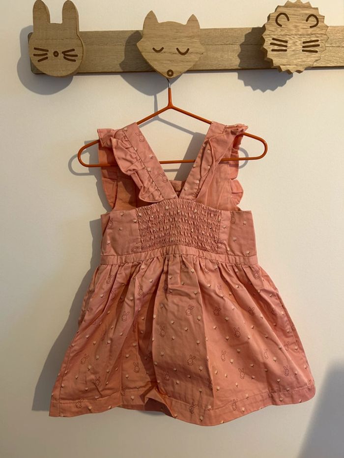 Jolie robe rose avec des petits lapins en parfait état. La robe est doublée. Marqué Kiabi 9 mois #bebefille9mois #robe9mois