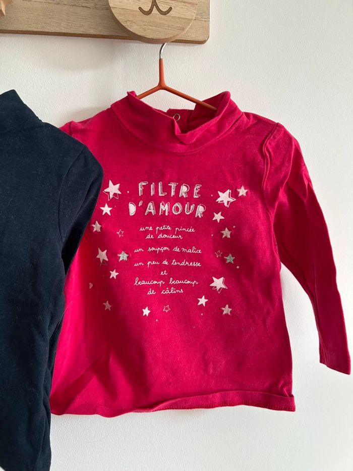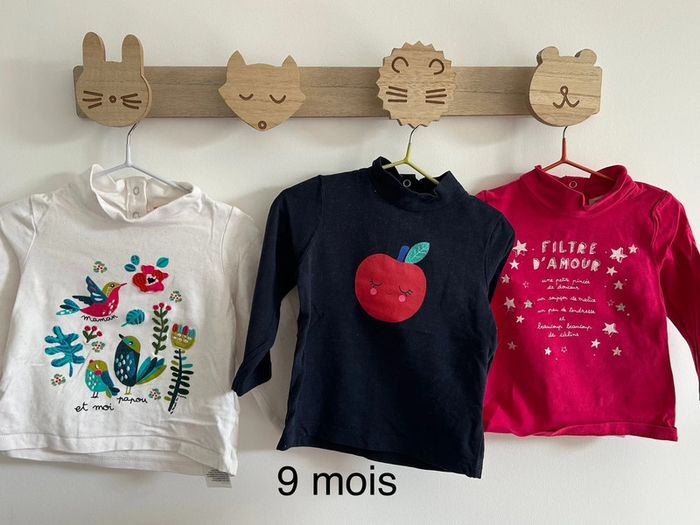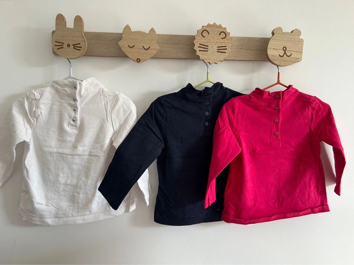 Lot de 3 tshirts manches longues avec petit col roulé en parfait état Marque du pareil au même Taille 9 mois #bebefille9mois #tshirtfille9mois