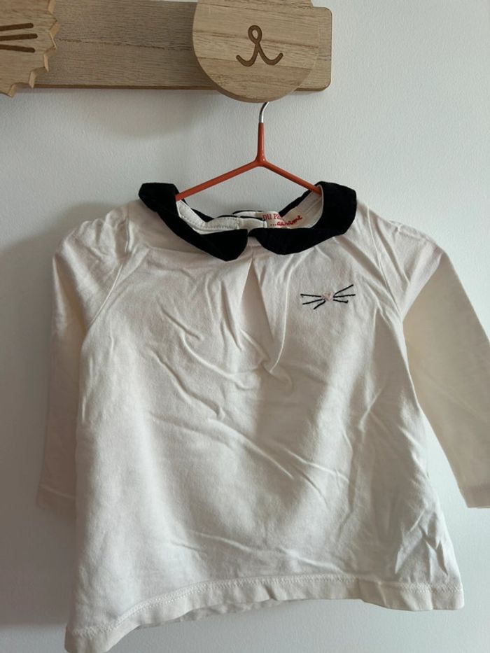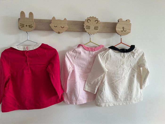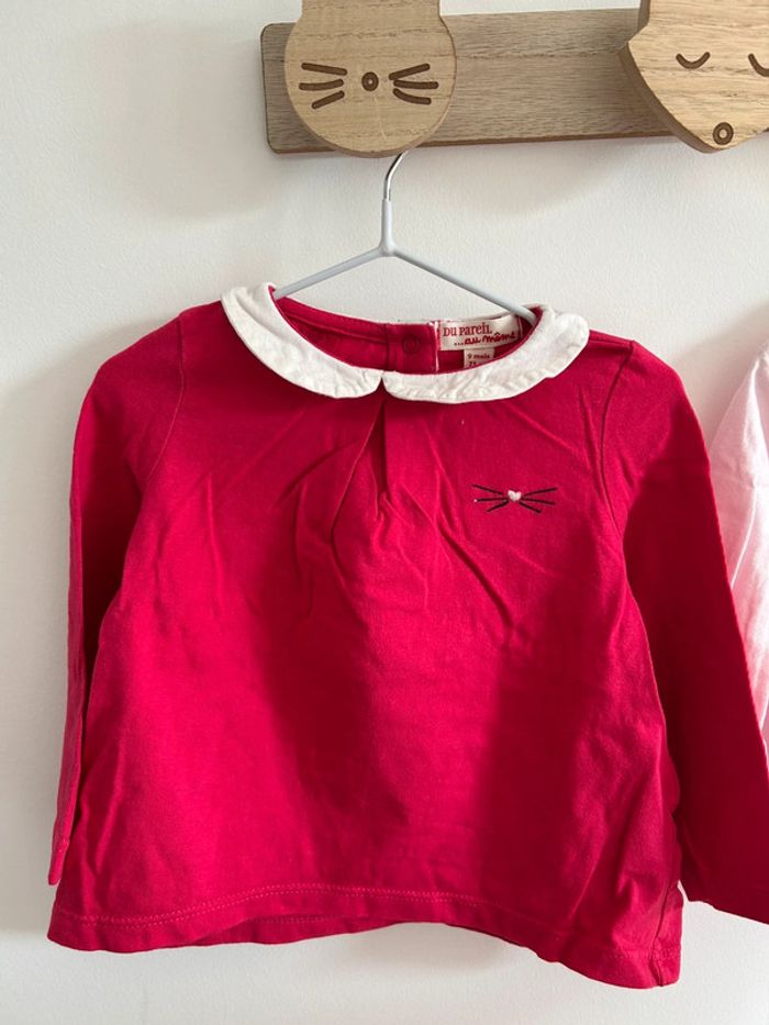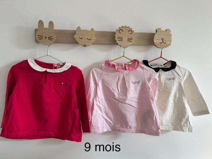 Lot de 3 tshirts manches longues avec petit col en parfait état. Marque du pareil au même taille 9 mois #bebefille9mois #tshirtfille9mois