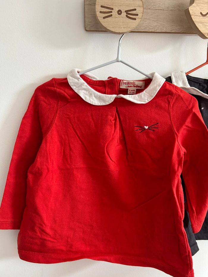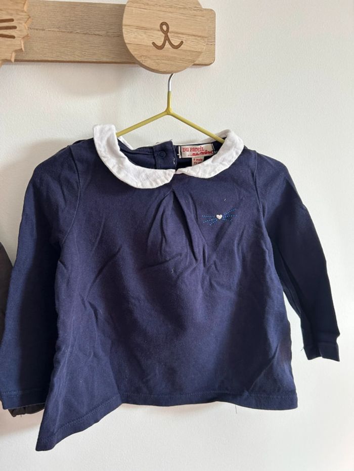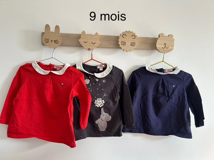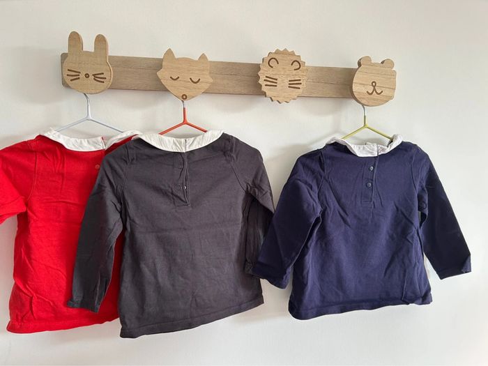 Lot de 3 tshirts manches longues avec petit col en parfait état. Marque du pareil au même Taille 9 mois #bebefille9mois #tshirtfille9mois