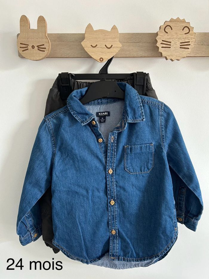 Chemise en jean manches longues marque Kiabi en parfait état + pantalon in extenso kaki 24 mois #bebegarcon24mois