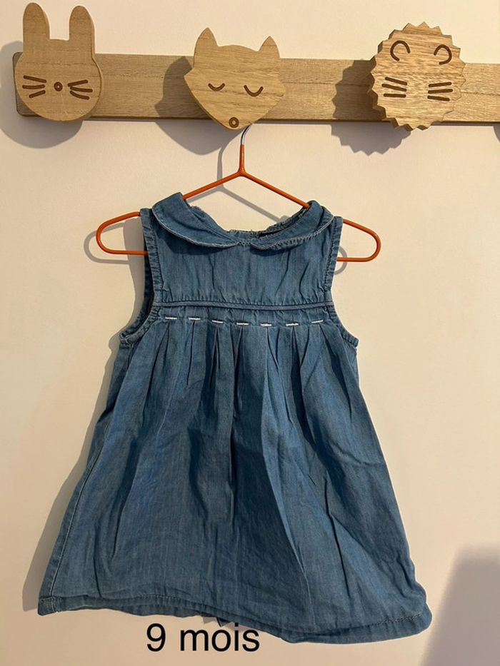 Jolie robe en jean à motifs en parfait état. Taille 9 mois Marque Kiabi #bebefille9mois #robefille9mois