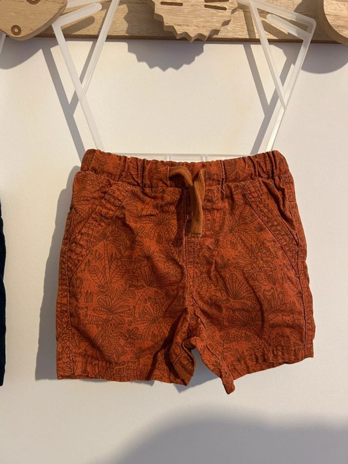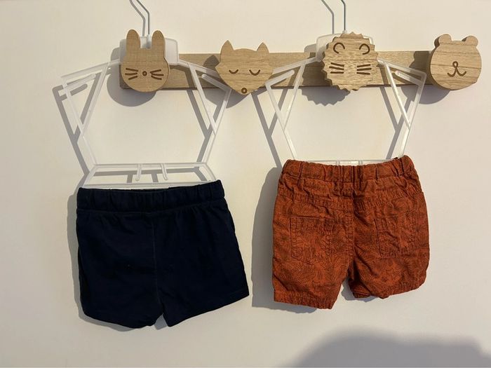 Lot de 2 shorts léger en bon état. Le bleu est en parfait état et le marron, un peu délavé mais aucune tâche. Marque Kiabi Taille 6 mois #bebegarcon6mois #short6mois