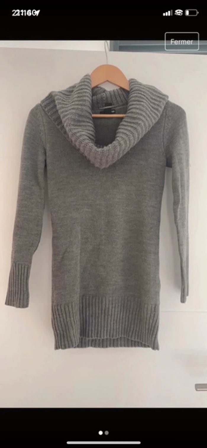 Pull long col roulé de couleur grise. 100% acrylique Taille XS marque H&M #pullfemme36 #natbopfemme36