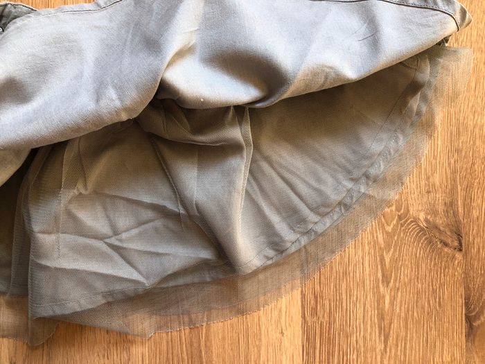 Jupe grise avec reflets légèrement irisés, resserrable à la taille Doublure en tulle Fermeture éclair sur le côté