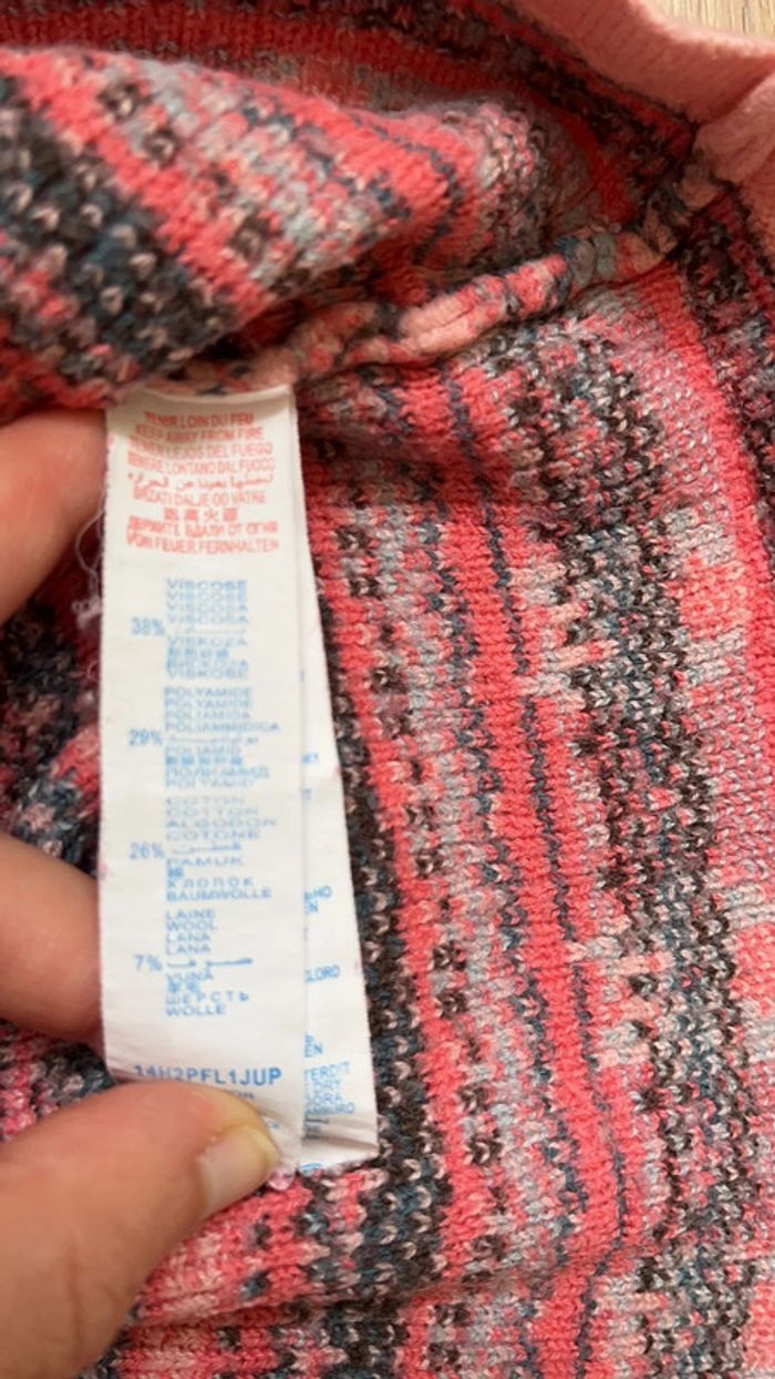 7 % laine 38 % viscose 29 % polyamide 26 % coton portée mais en bon état, quelques bouloches (voir photos) taille élastique non resserrable