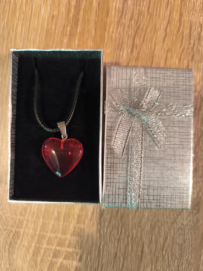 Vend un collier cordon noir , pendentif pierre coeur rouge Vendu avec la boîte Neuf. Sans marque #lylla19bijoux