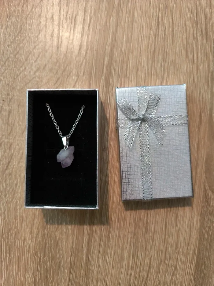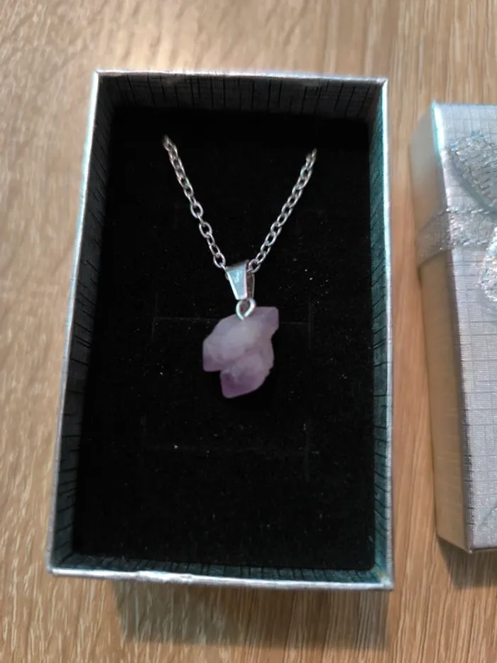 Vend un collier chaîne, pendentif pierre améthyste irrégulière. Neuf Vendu avec la boîte Sans marque #lylla19bijoux