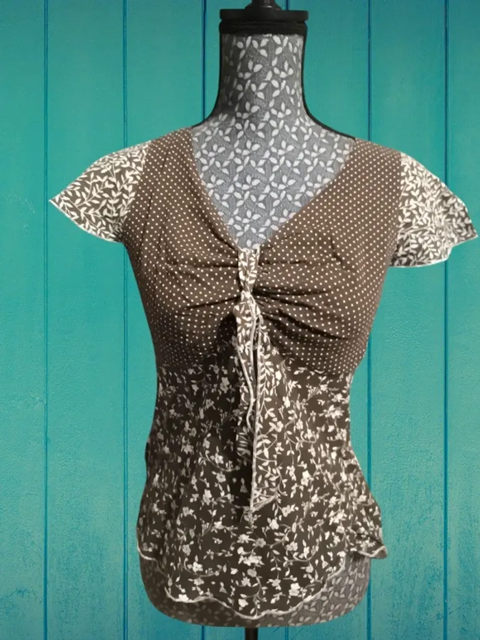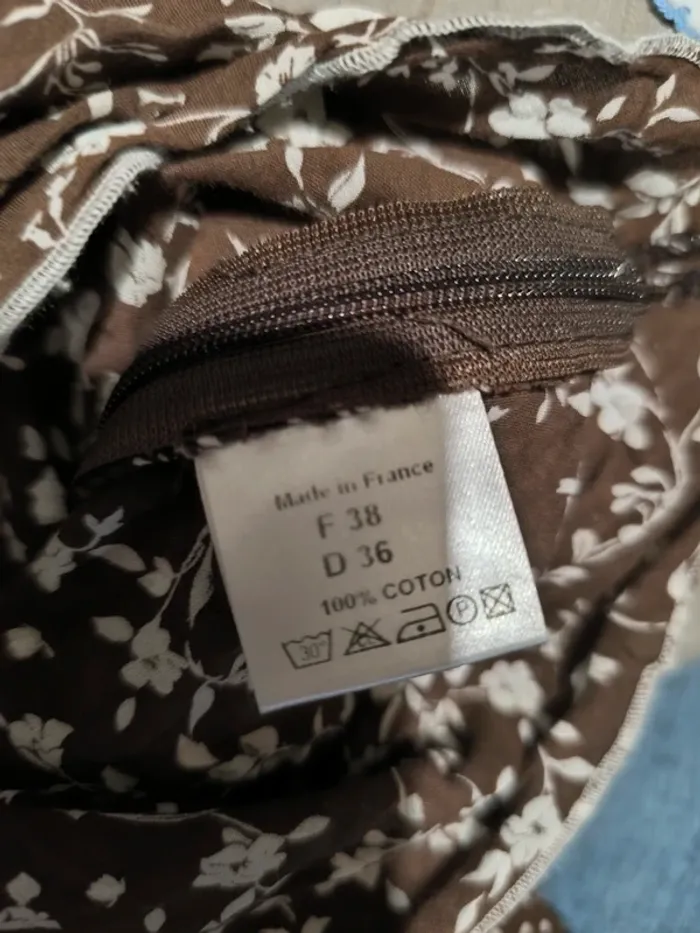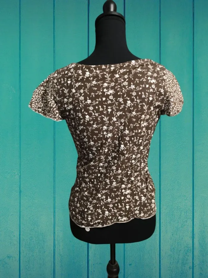 Vend un t-shirt marron fleur blanche. Marque Christine Laure. Taille 38 . Fermeture éclair sur le côté au niveau poitrine #lylla19femmem