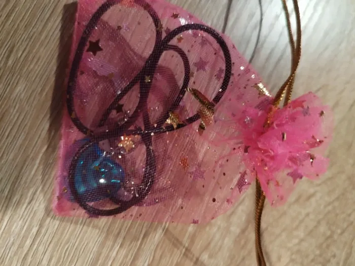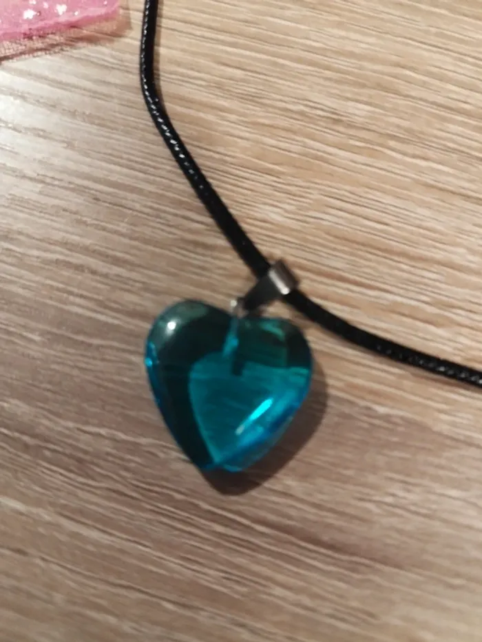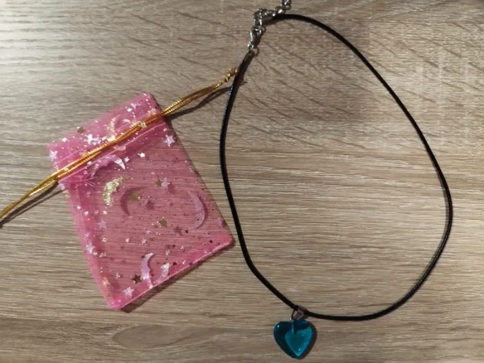 Vend un collier pendentif coeur bleu. Vendu avec petit sac rose. #lylla19bijoux
