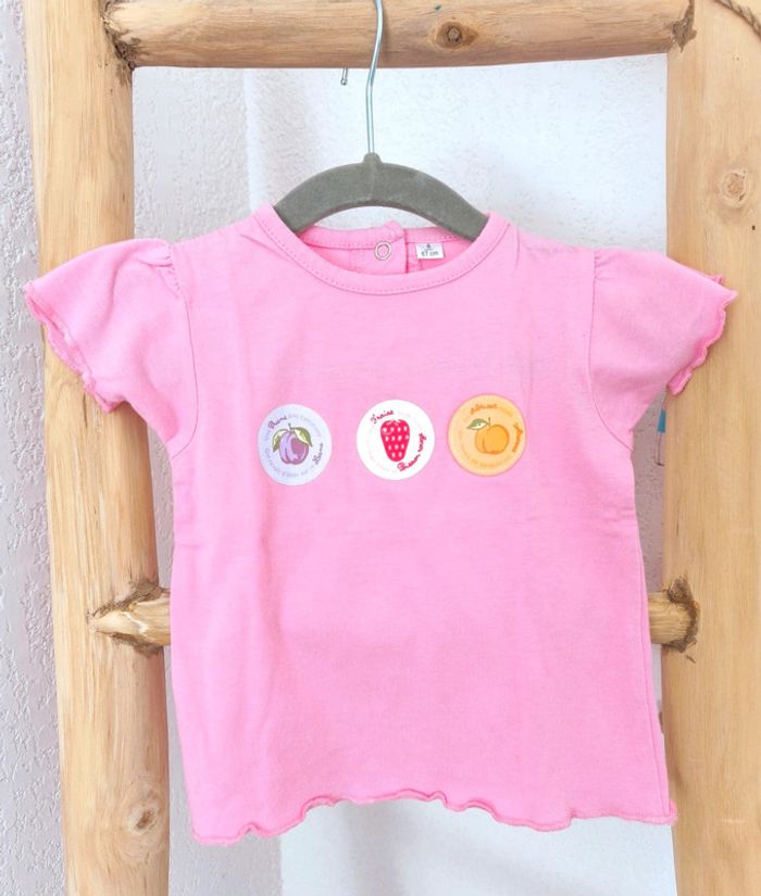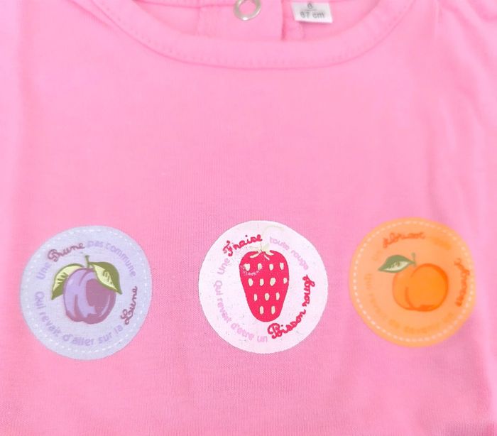 #loulaliefille6mois dans la recherche pour voir tout mon 6 mois T-shirt manches courtes rose motifs fruits, prune fraise abricot, pressions dos, 6 mois Kiabi seconde main et beebs possible