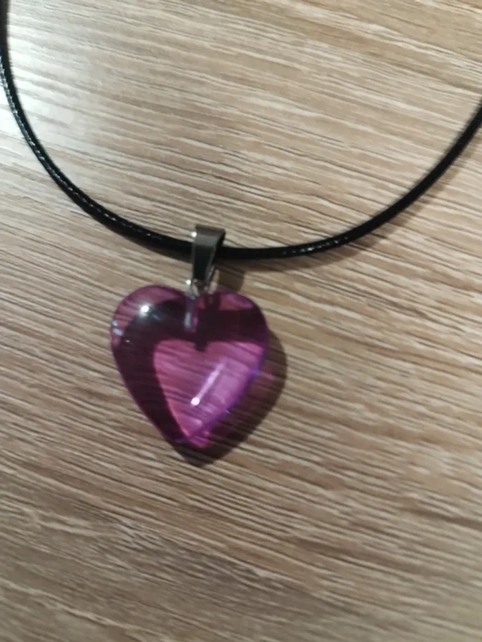 Vend un collier couleur violet. Pendentif coeur. Vendu avec sac bleu. #lylla19bijoux