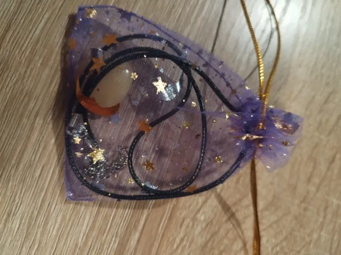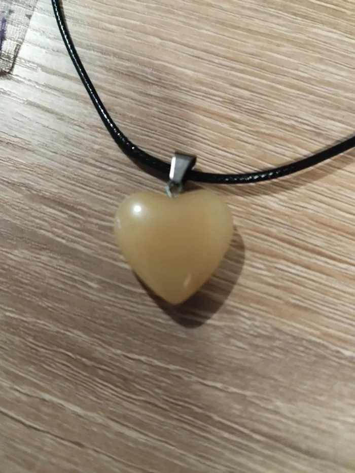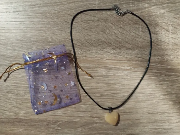 Vend un collier en forme de coeur jaune Vendu avec petit sac violet. #lylla19bijoux