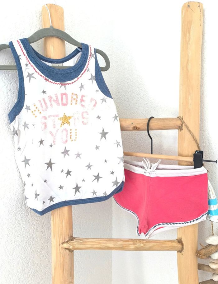 #loulaliefille4ans dans la recherche pour voir mon 4 ans fille Pyjama été IKKS 4 ans . Haut blanc et bleu doré motifs étoiles bas rouge . Rouge moins vif que sur la photo . Kiabi seconde main possible.