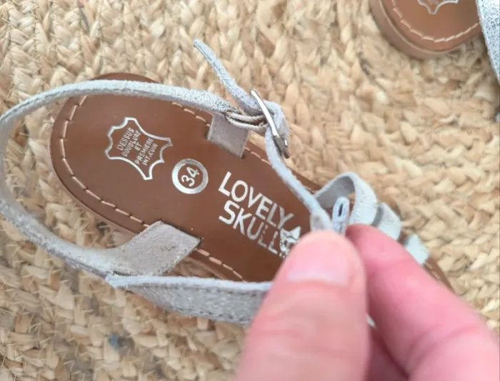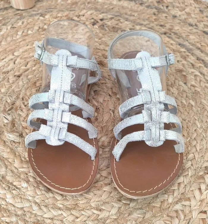 #loulaliechaus34 dans la recherche pour voir mon 34 fille Sandales spartiates Lovely skull T.34. cuir argenté.