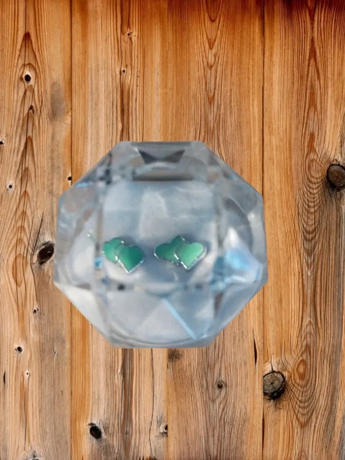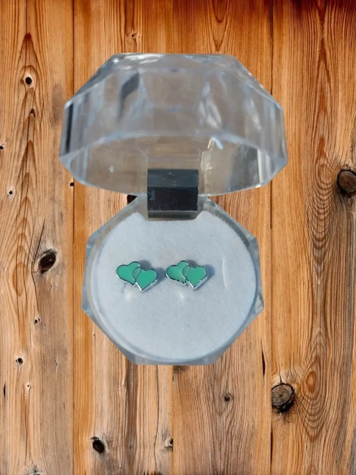 Vend une paire de boucles d'oreilles cœurs vert clair. ( Barre en plastique) Neuves jamais portées. Vendu avec la boîte en photo #lylla19bijoux