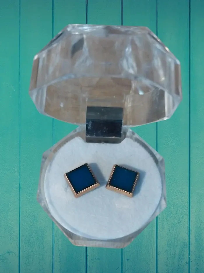 Vend une paire de boucles d'oreilles (la barre est en plastique) . Neuf jamais porté vendu avec la boîte en photo. Couleur bleu #lylla19bijoux