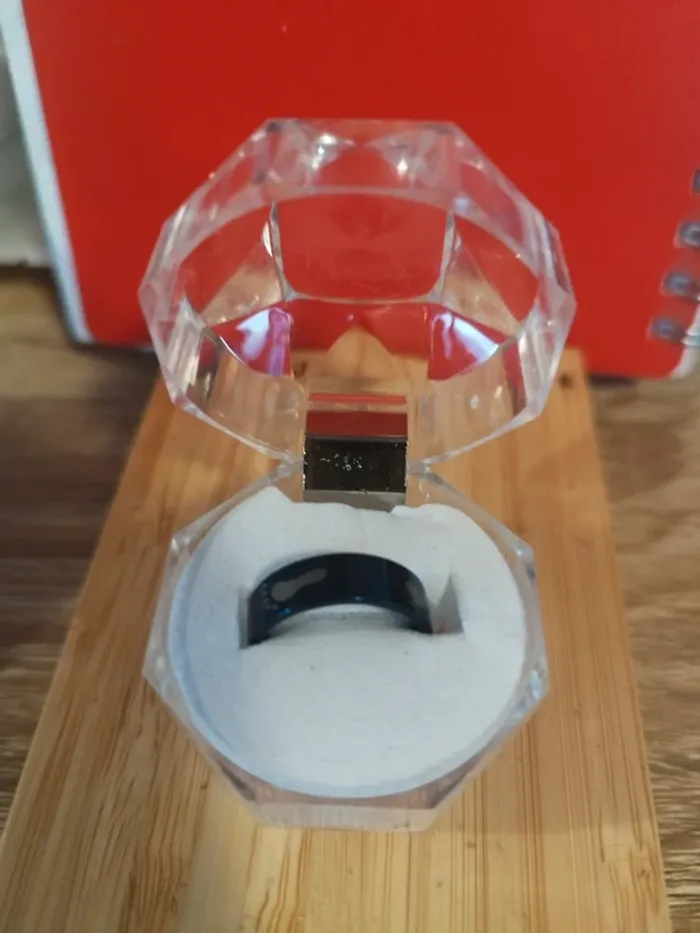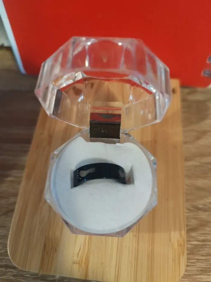 Vend une bague bleu avec dessins de pieds bébé dessus . Neuve Vendu avec la boîte. Taille size 17 #lylla19bijoux