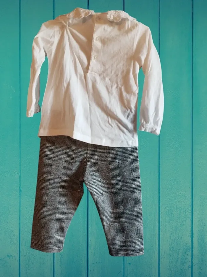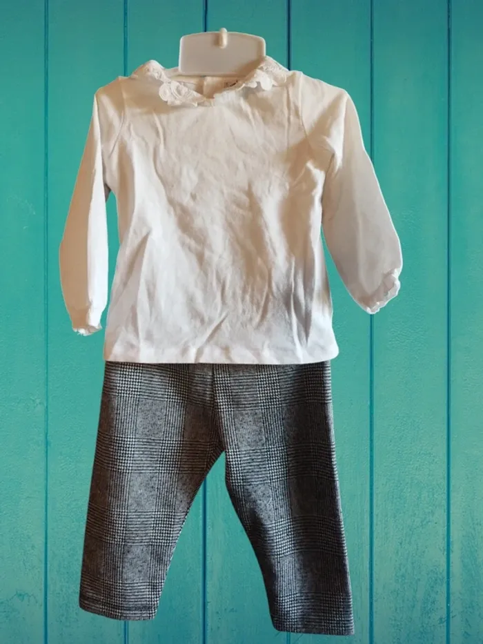 Vend un ensemble taille 12 mois . Sans marque. T-shirt très bon état Pantalon un peu bouloché visible en photo. #lylla19fille12mois