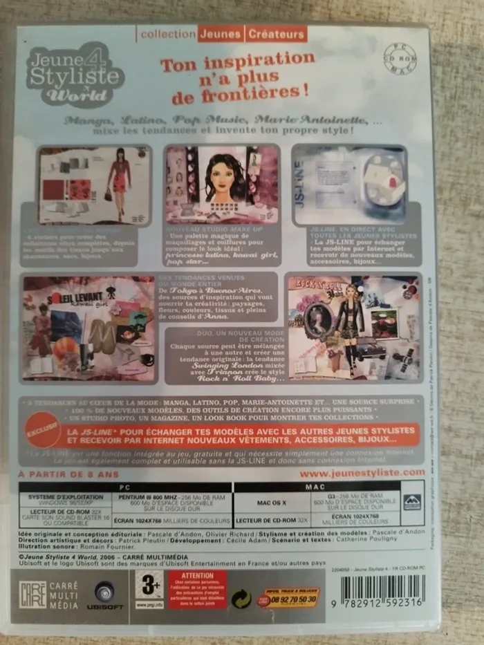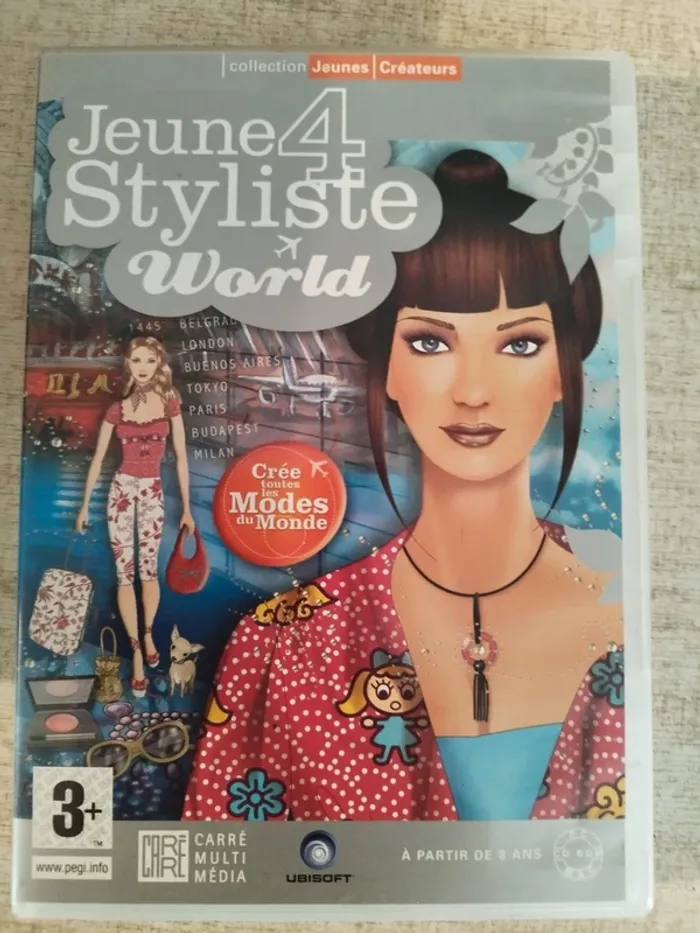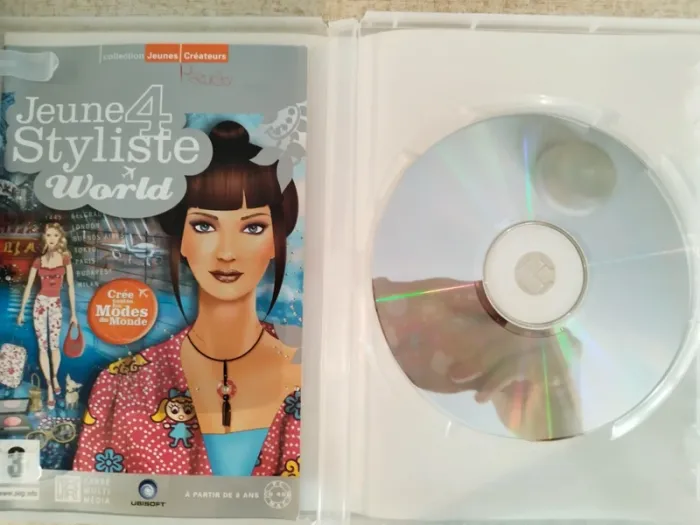 Vend un jeu vidéo PC mac . Cd rom A partir de 8 ans écrit sur la boîte Jeune styliste 4 World. #lylla19jeuvideo