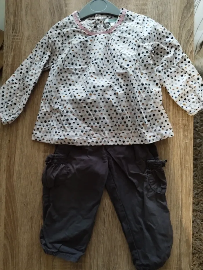 Vend un ensemble blouse avec son pantalon léger. Taille 18 mois, 80 cm Marque obaibi. #lylla19fille18mois