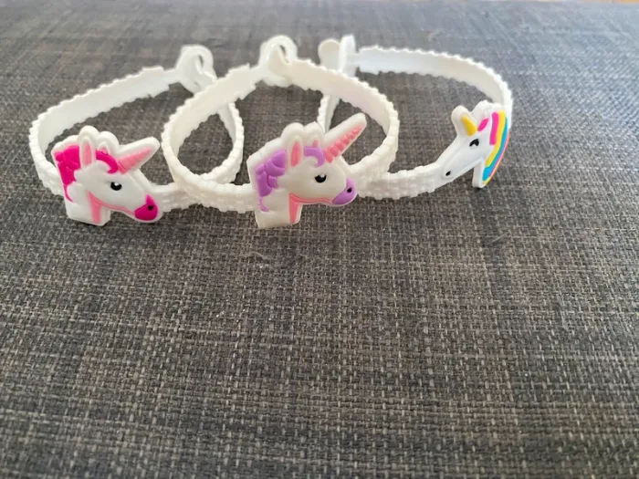 Lot de trois bracelets En plastique, Couleur blanc Avec licorne 🦄 En parfait état #lotbraceletenfant #braceletlicorne #braceletplastique