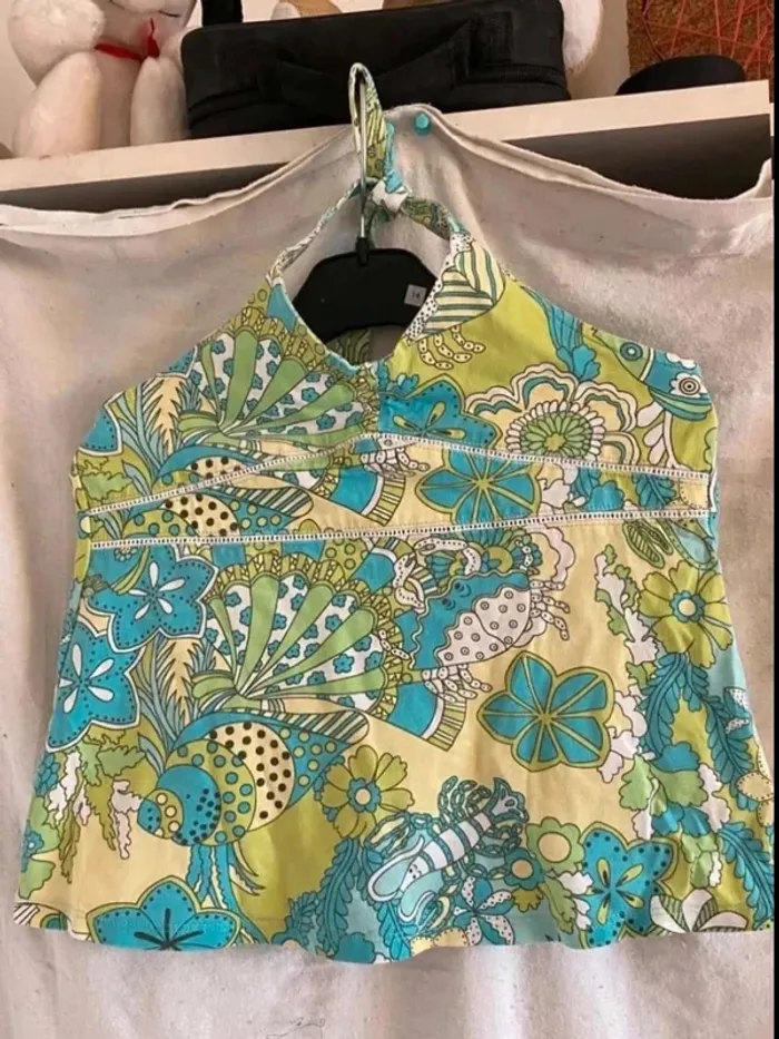 Jolie dos nu Couleur blanc motif fleuri vert et bleu Taille 14ans Marque C&A En parfait état #dosnufille #dosnuceta #dosnufleuri #ceta #cetafille #cindytempelfille14ans