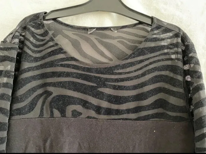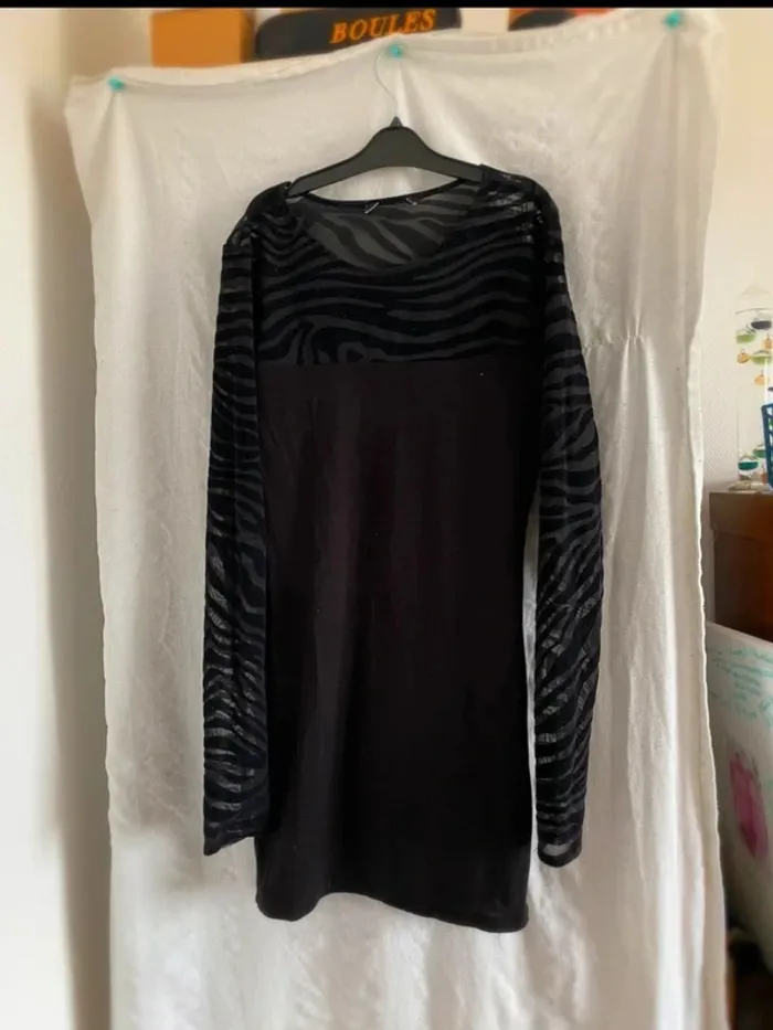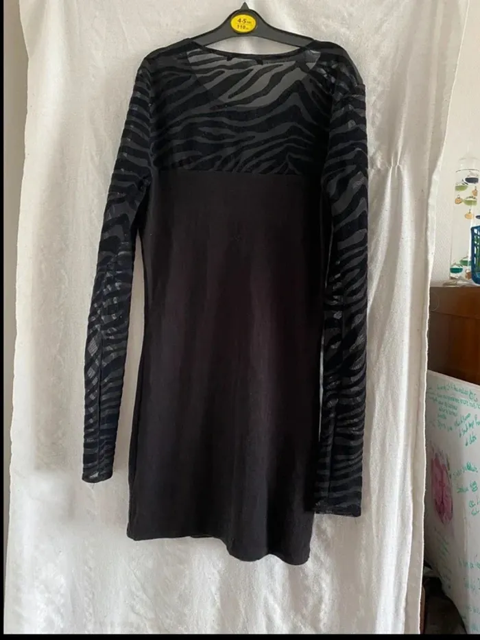 Magnifique robe Manche longue Transparente zébrer Coupe près du corps Couleur noir Taille XS/ S En parfait état #robenoir #robemancheslongues #robeajustée #cindytempelfemme34 #robezébrée