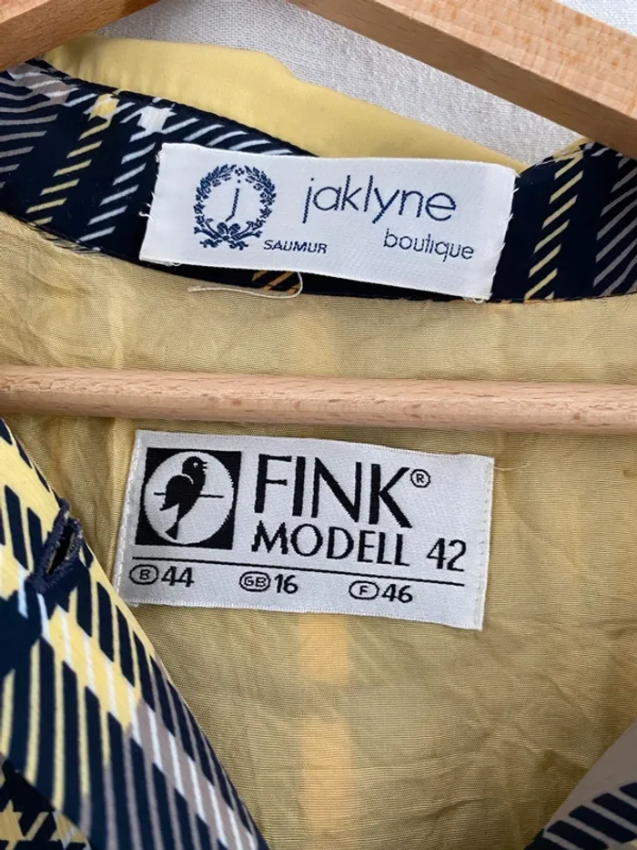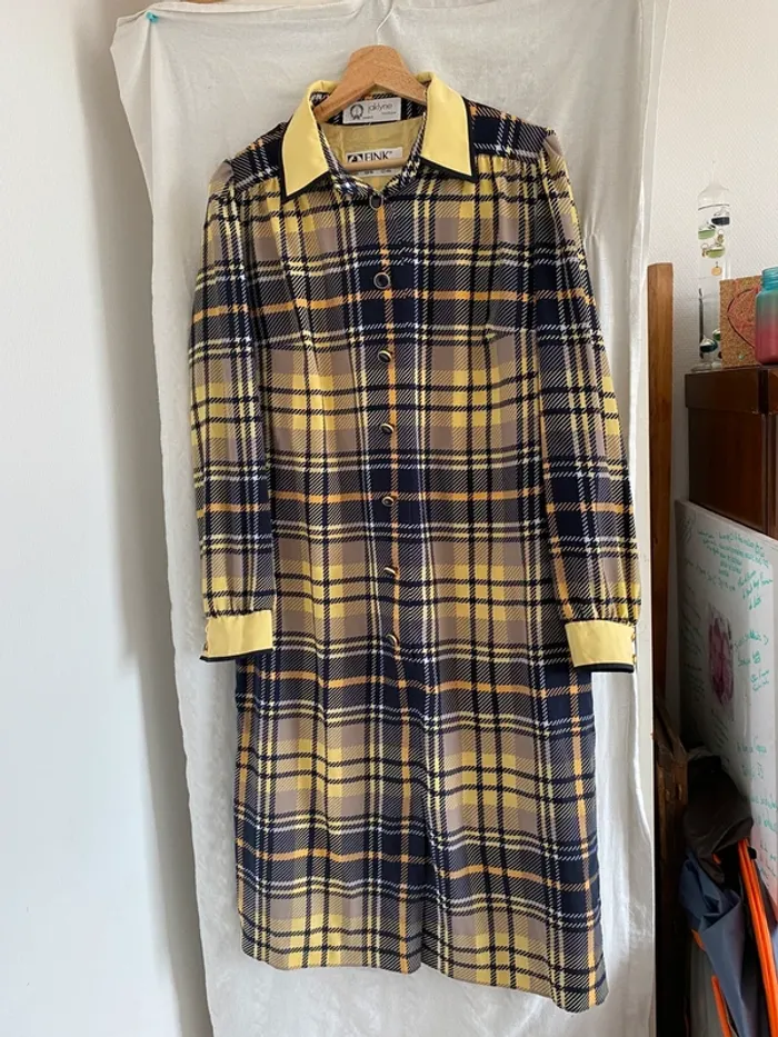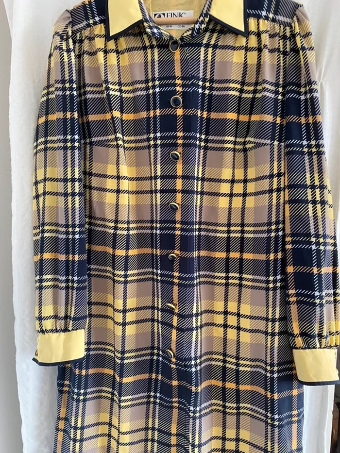 Robe longue Manche longue Avec boutons Couleur jaune et marine taille 42 Marque Jacklyne #robevintage #robeacarreauxvintage #robejacklyne #jacklyne #cindytempelfemme42