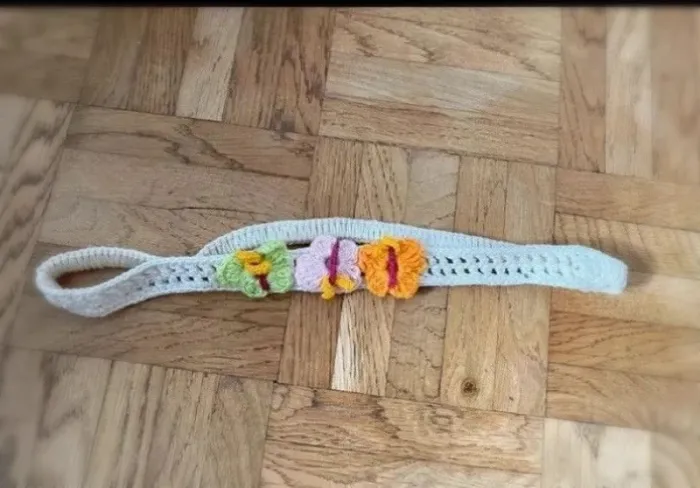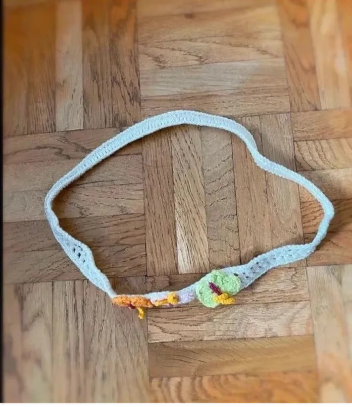 Jolie bandeau crocheté Avec trois papillon Couleur beige, vert, orange et rose En parfait état #bandeaupapillons #bandeaucrochet #cindytempelaccessoire