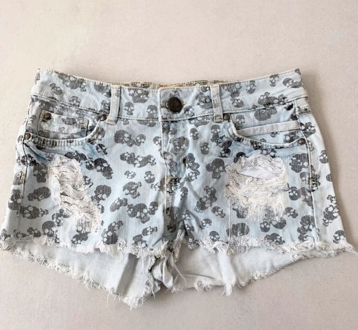 Short en jean bershka avec têtes de mort 36 - photo numéro 1