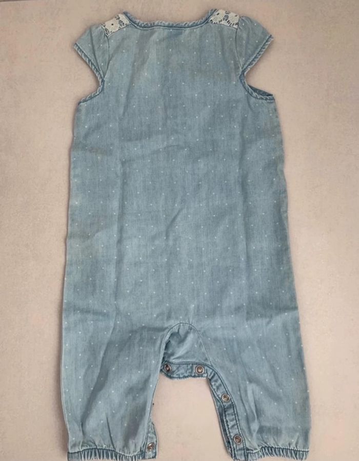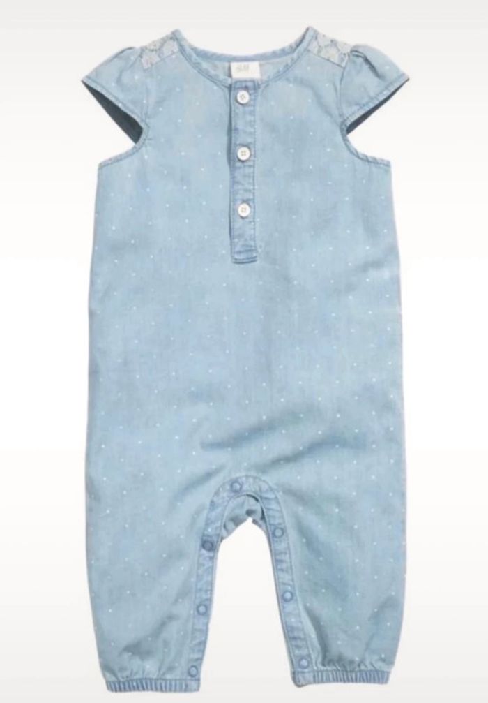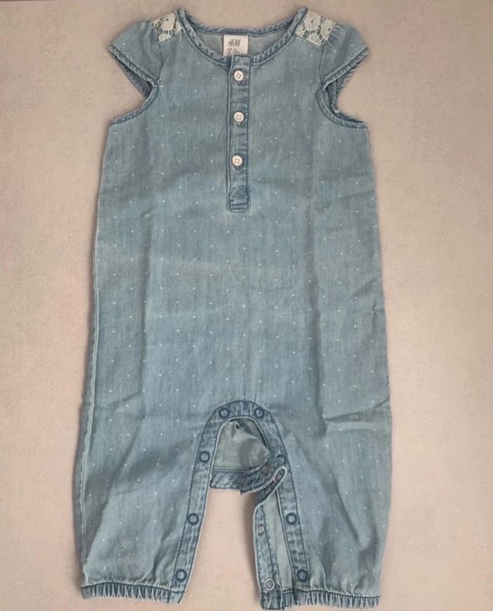 Salopette combinaison h&m neuve Jean clair souple petit pois blancs et dentelle 4/6 mois 68cm ouverture pratique entrejambe par pressions