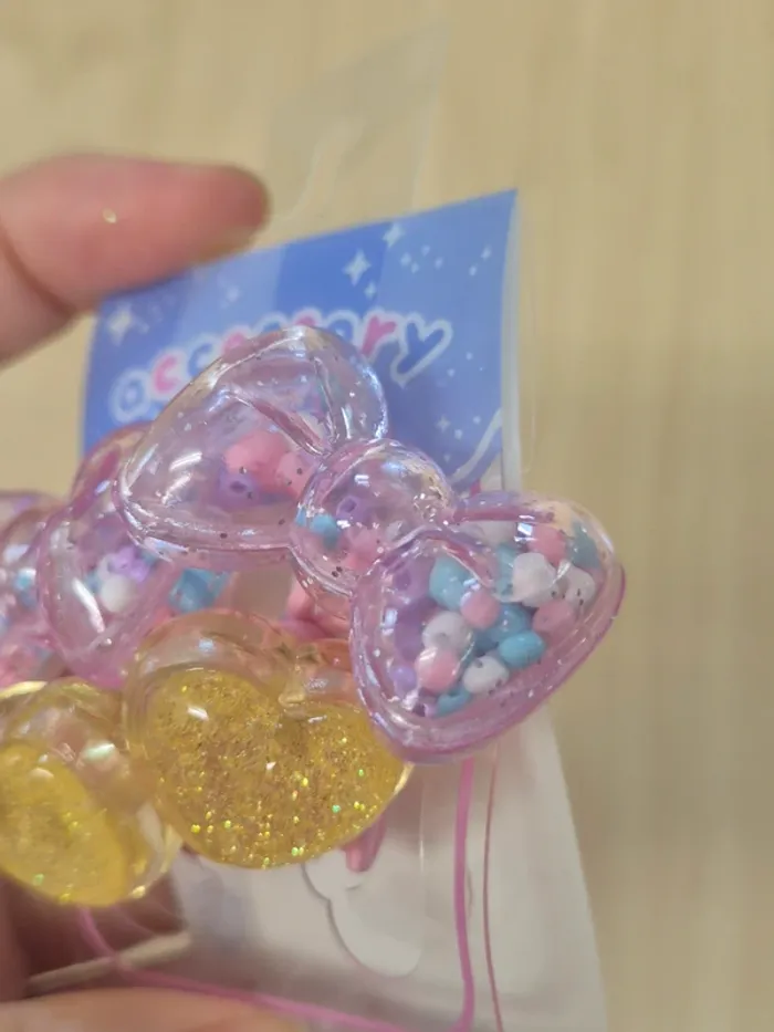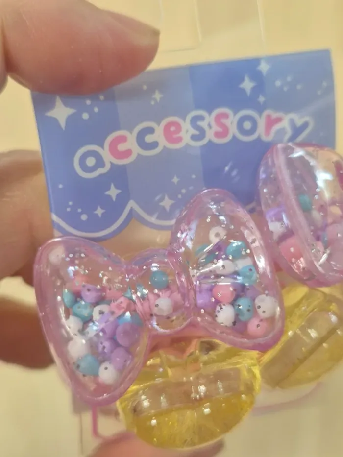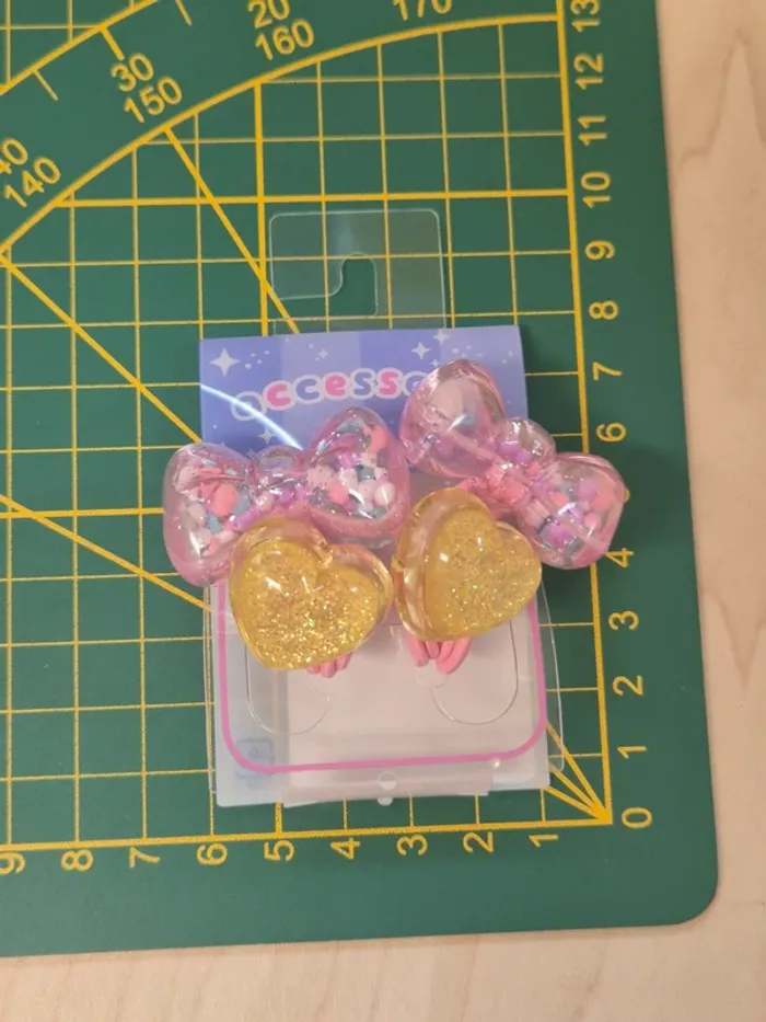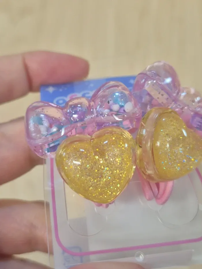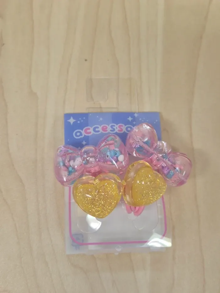 Set 2 élastiques cheveux nœuds + cœurs rose et jaune