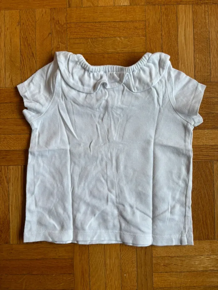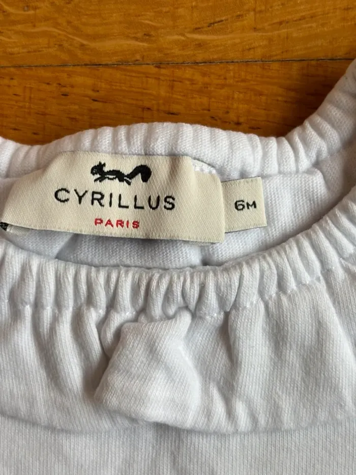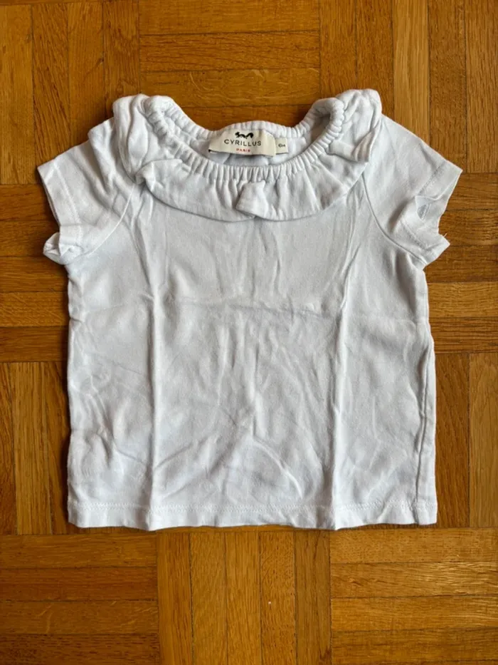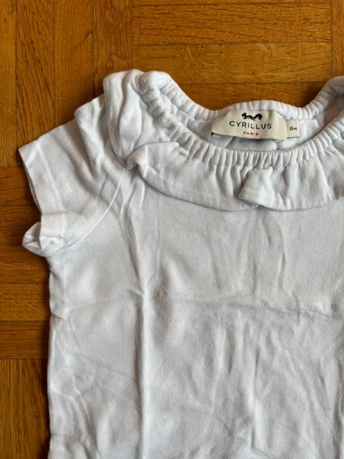 T-shirt blanc à col Cyrillus 6 mois parfait état - photo numéro 2
