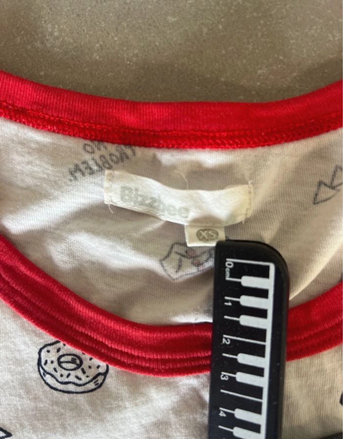 Tee Shirt Bizzbee blanc à motifs rouge et marine manches courtes et col avec bordure rouge taille XS bon état #marie27031965femmexs