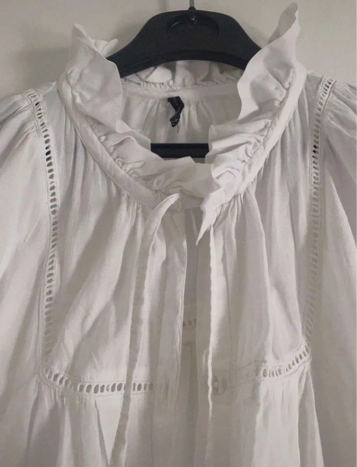 Blouse Naf Naf broderies, volants et galons blanc très bon état #marie27031965femmeS