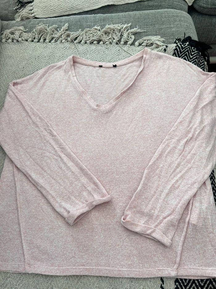Pull BZB rose col V détails côtés manches avec petits revers taille XS il n’y a plus l’étiquette de la marque mais vous la retrouvez sur l’étiquette intérieure #marie27031965femmexs