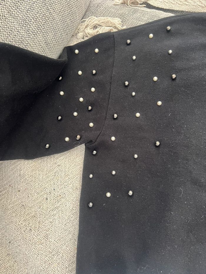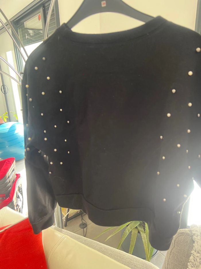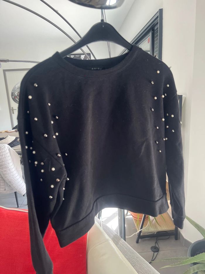 Sweat Amisu noir déco perles rapportées col rond taille XS bon état #marie27031965femmexs