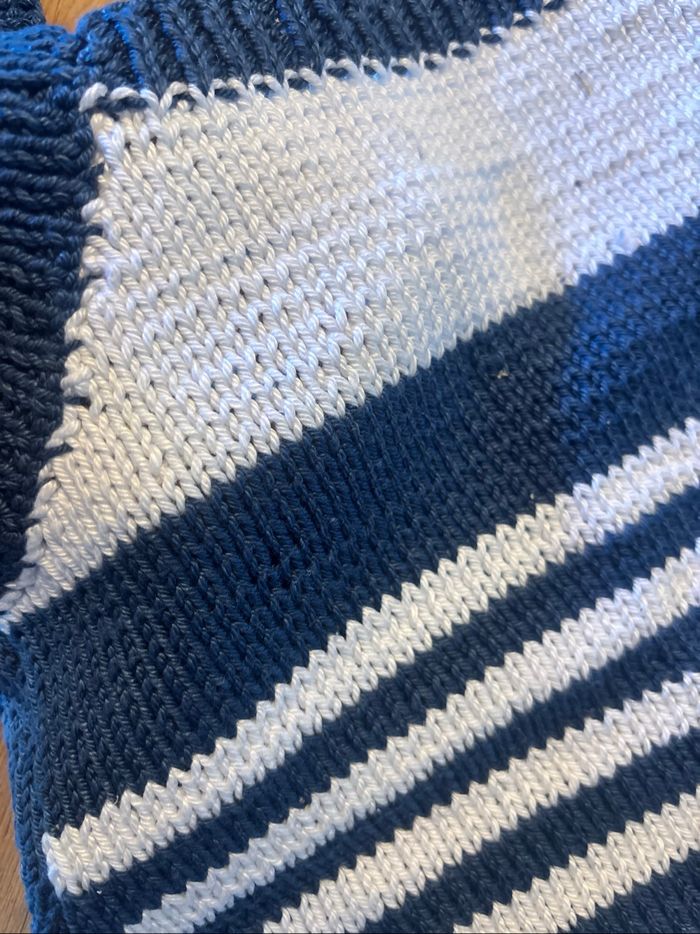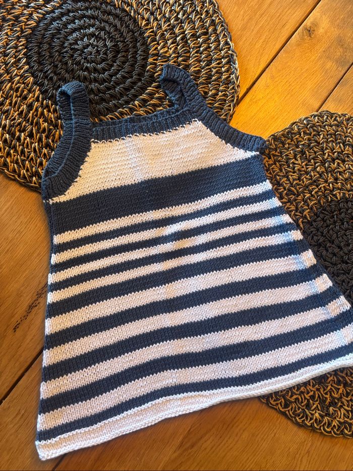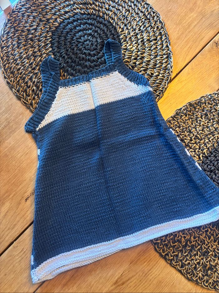 Robe marine en tricot, faite main, état neuf jamais portée. Correspond à du 18-24mois