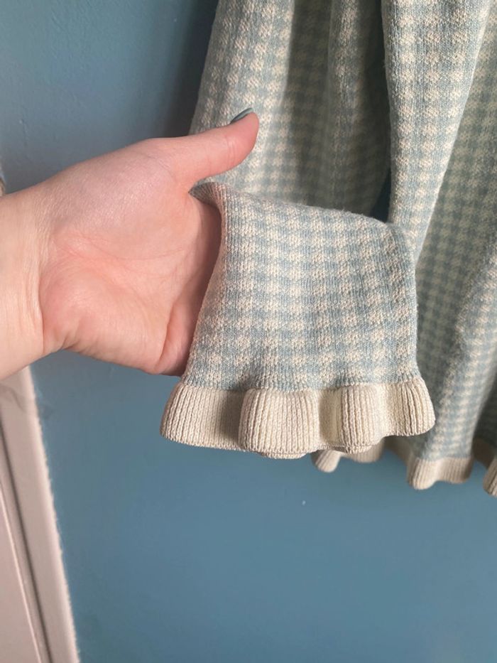 Jolie petit pull fin motif vichy bleu clair - photo numéro 2