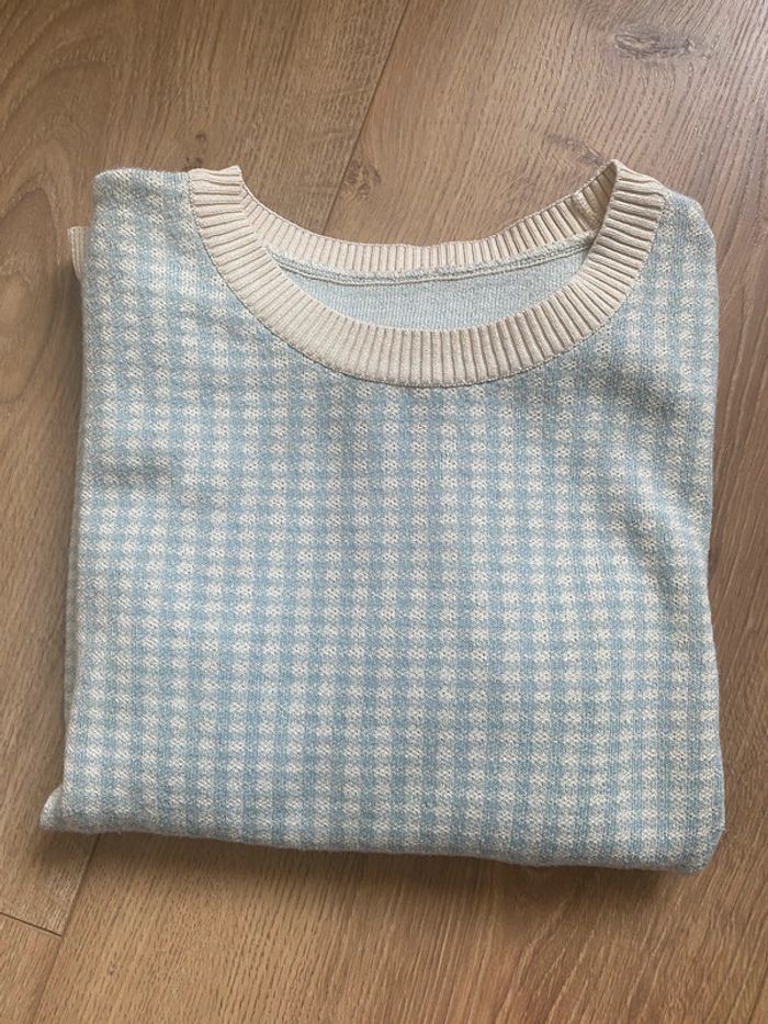 Jolie petit pull fin motif vichy bleu clair - photo numéro 1