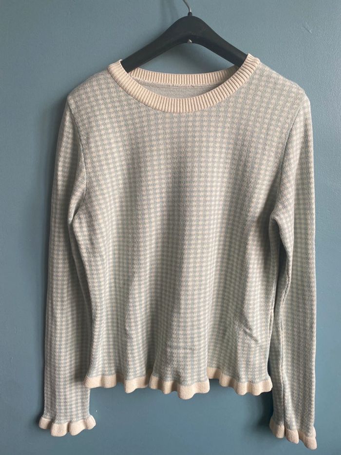 Jolie petit pull fin motif vichy bleu clair esprit vintage Très bon état Taille M Pimkie