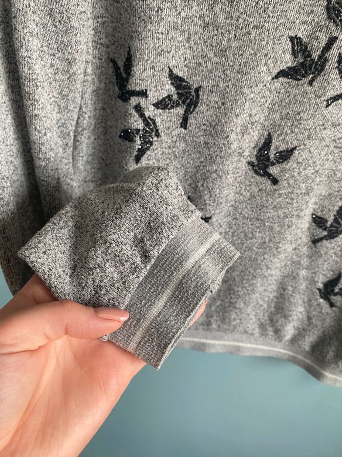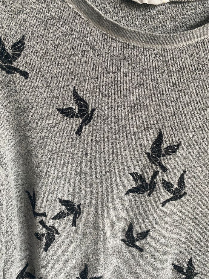 Petit pull léger avec oiseaux gris chinee Très bon état Taille M (plus d’étiquette)