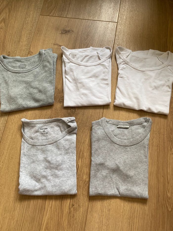 Lot de tricot de peau t-shirt manches courtes 6 ans Bon état général Une couture à ete refaite sur le gris kiabi (voir photo) Marque diverses : kiabi dim tissaia