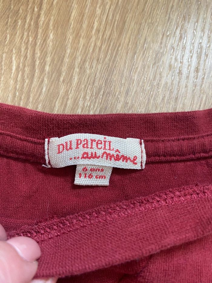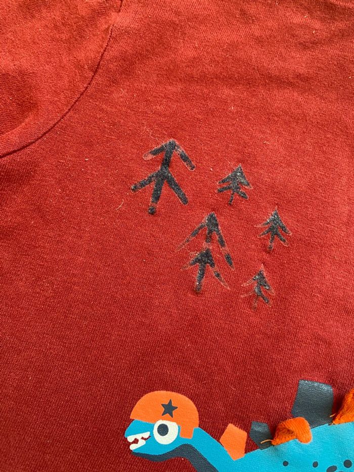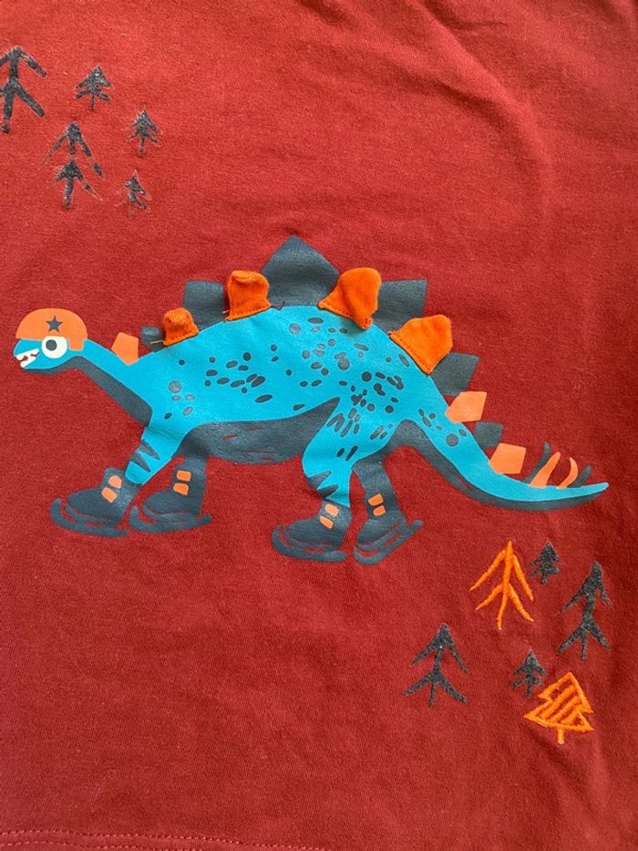 T-shirt manches longues avec dinosaure Très bon état, que les petits sapins qui sont très légèrement effacé Taille 6 ans