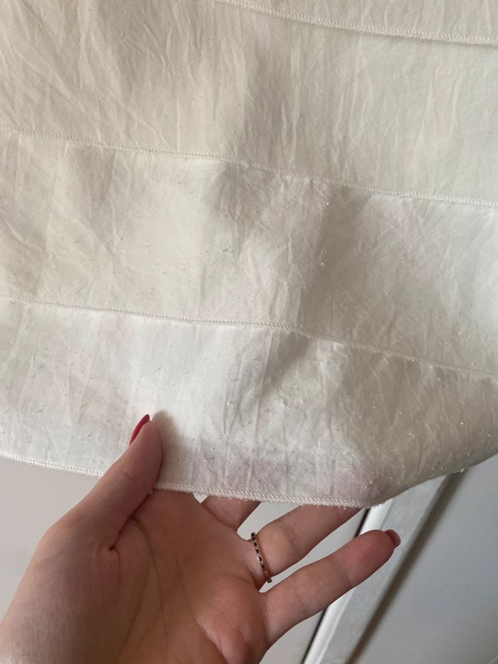 Robe blanche légère pour l’été Avec volants tout le long Bon état général, quelques petites bouloches (voir photo) Longueur 93 cm Aisselle à aisselle 49 cm