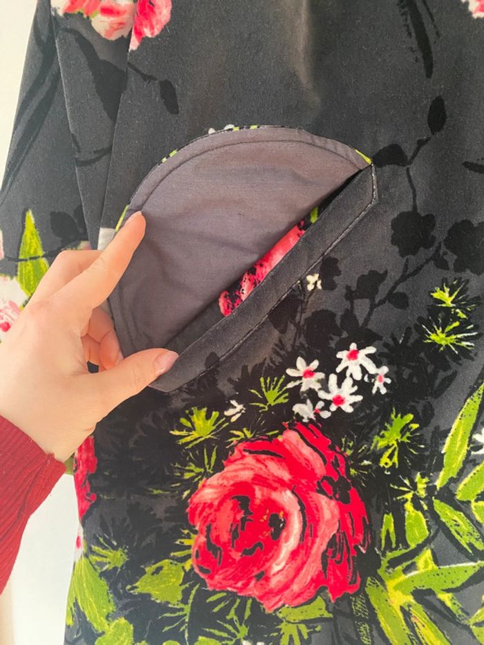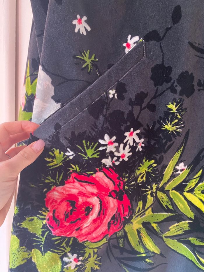 Manteau en velour Kenzo noir et fleurs 40 - photo numéro 5