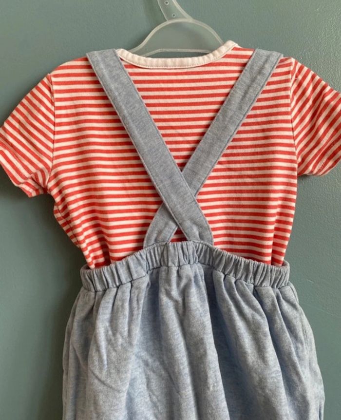Robe Disney dumbo brodée avec body marinière a rayure Bon etat, petite tache a peine visible à côté du « D » (voir photo) Body un peu moins blanc au niveau du col et des boutons en bas 12 / 18 mois taille comme du 18 mois Vient du parc Disneyland disney store